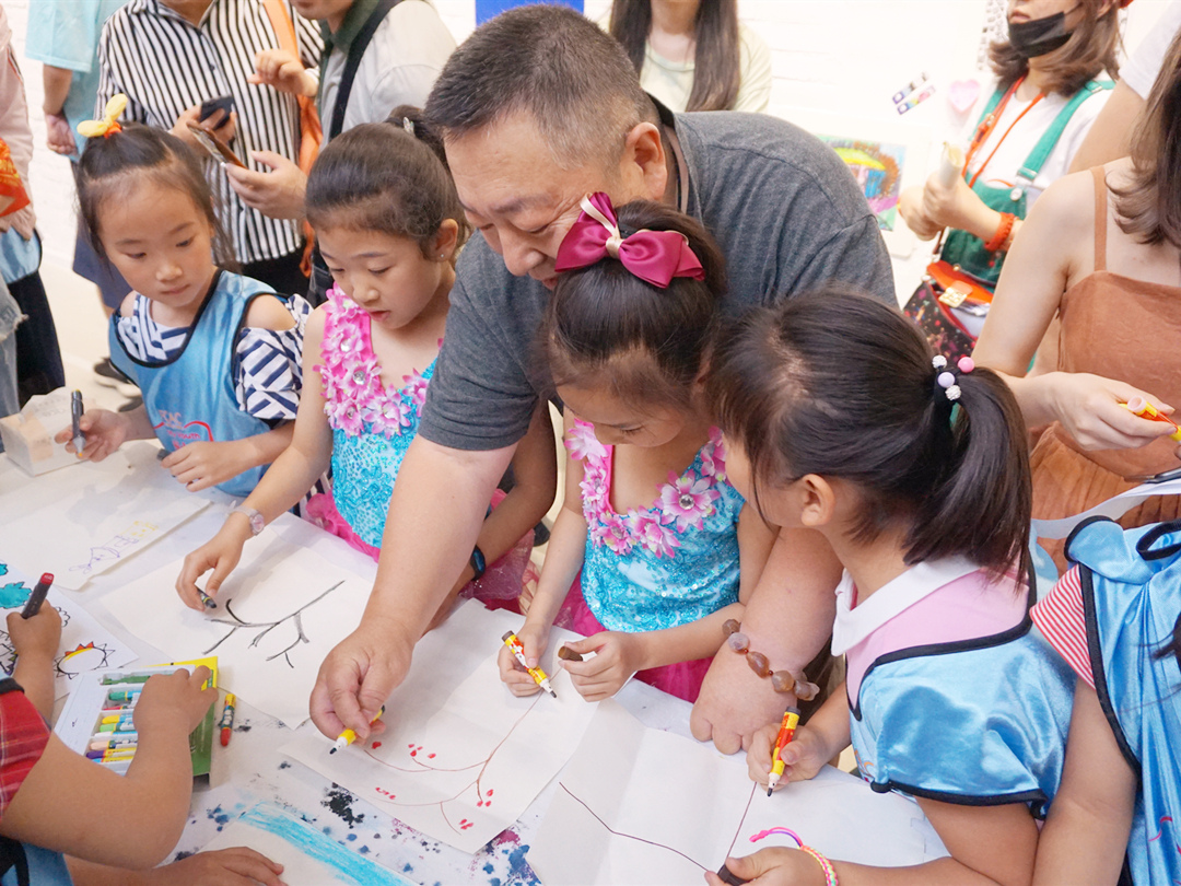 当天下午,“董浩叔叔”还亲自带领孩子们到山和海美术馆参观画展,并与孩子们互动创作,一起画下这特别的六一儿童节。这些作品将捐赠给阳光少年基金进行公益拍卖,所得善款全部用于特殊儿童群体和困境儿童家庭。