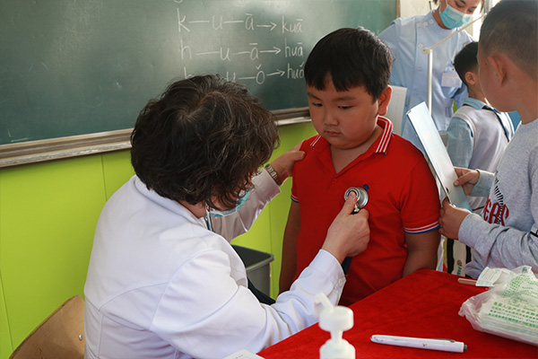 为科学有效地推动贫困儿童健康成长,在国庆中秋又节到来之际,9月29日上午,我院携手《小小支教》栏目组开展“为爱背起支教行囊公益活动”公益义诊活动。本次义诊活动旨在关心孩子们的身心健康,普及儿童疑难病健康常识,为小朋友送上“健康”礼物。