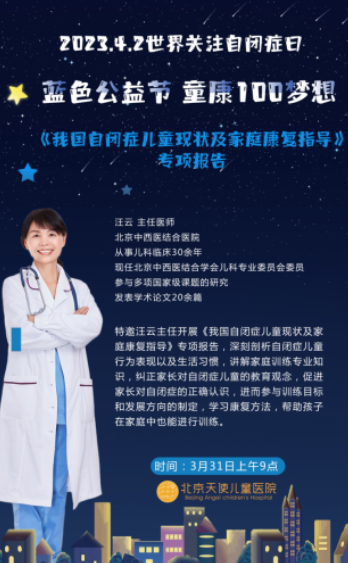 为了迎接“世界自闭症”的到来,配合联合国和“世界自闭症日”活动主题,提高全国各方面人士对孤独症的关爱与关注,北京天使儿童医院3.28日开始,开展2023蓝色公益节·童康100梦想活动,让我们走进医院,走进一群自闭儿童与自闭症抗争的人们...