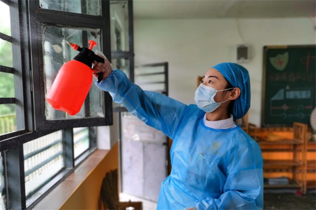 来自我院的医务志愿者谢媛媛介绍,自己作为一名医护新人,次参加公益活动心理十分激动和开心。一大早就开始准备消毒用品,比如防护衣、口罩、消毒液等,此次能够为助力学校开学复课,做好疫情防控工作,贡献力所能及的事情,是一件很值得高兴的事情。