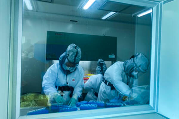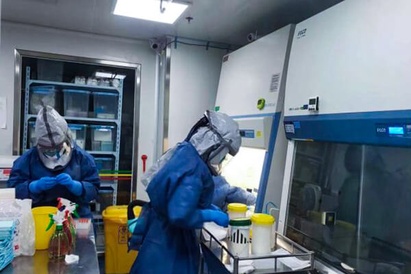 本次检疫工作,防控防疫检验组"全副武装"对疑似病人标本进行核酸检测。本次检疫工作通过快速整合金域医学其余省级实验室的资源和设备,优化检测方法,单日检测能力还有望逐步提升到2000例以上,有效实现"快、准、足"的工作策略。