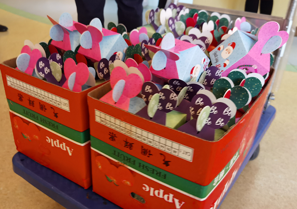 12月24日是平安夜(即圣诞前夕),大街小巷上早已弥漫着圣诞的气息,为了让患儿和家属感受到节日的气氛,缓解疾病带来的折磨,北京天使儿童医院特别策划,提前为患儿准备了精心包装好的平安果,由“圣诞老人”亲自送到每个患儿和家属的手上。