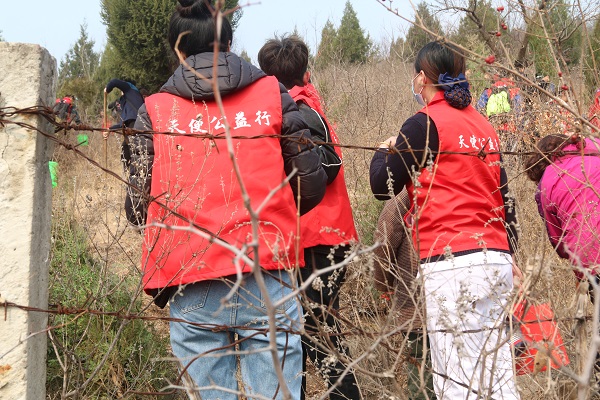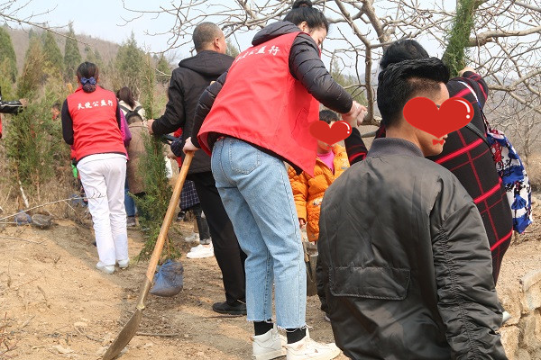 孩子们热情高涨,积极参与,互相配合。在天使公益团队的带领下,孩子们干得热火朝天,其乐融融,大家都有明确的分工,有的用铲子松土挖坑,有的往坑里种树苗,有的填土浇水。道道工序都做的认真、仔细,欢喜的把手中一棵棵的小树苗植入大地,忙得不亦乐乎。天蓝云白,李树花开,春意盎然,构成一幅和谐勤劳的画面。
