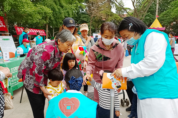 义诊现场,北京天使儿童医院公益团队不仅耐心地为每一位居民免费提供健康预约和问诊,为儿童进行身高体重测量等服务,还现场根据居民的健康情况提出康复指导,并给予针对性的护理、饮食等建议。在整个义诊活动过程中,问诊的居民络绎不绝。