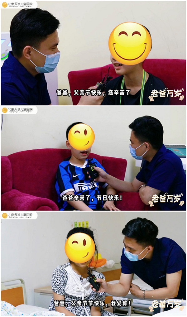 在北京天使儿童医院,爸爸和孩子的感人故事每天都在上演,一幕幕温情画面更是不胜枚举。今天是父亲节,我们就要一同来聆听一下孩子们对父亲的告白……