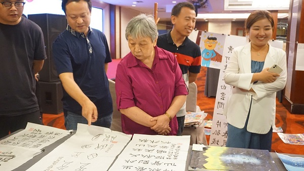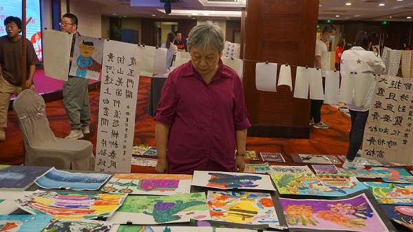 在场人员都被精美又充满童真童趣的书画所吸引,纷纷驻足欣赏。在书画作品前,大家仔细观看、认真品读!书画对于自闭症儿童来说是一种非常好的表达形式,人们也可以通过他们的画作走进他们内心的世界!