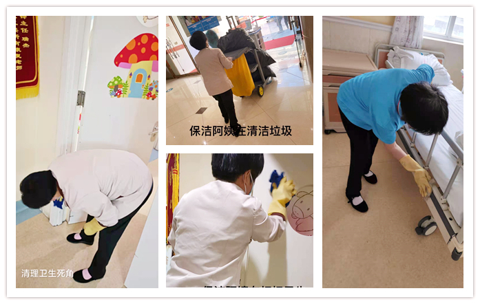 这些保洁员阿姨在医院每天做着最脏、最累的工作,她们毫无怨言地擦拭病房的卫生间,她们总是弯着腰拿着工具清扫被随意丢弃的垃圾。患儿和医务人员走进医院,看病、工作的同时还能享受整洁的医疗环境。也许,我们不能帮助她们清扫,但是我们能做的是将垃圾扔到垃圾桶里而不是外面;我们能做的是宽容理解她们无意的一次“刮碰”;我们能做的是尊重她们的职业和劳动,心存感激!