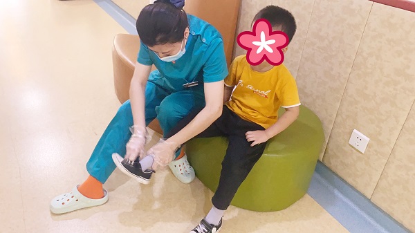一位6岁的患儿说,护士就像妈妈一样照顾我,会给我穿鞋穿衣服,也会抱着我玩,会提醒我多喝水好好吃饭,不忙的时候也会给我讲故事,我在医院住得很开心。