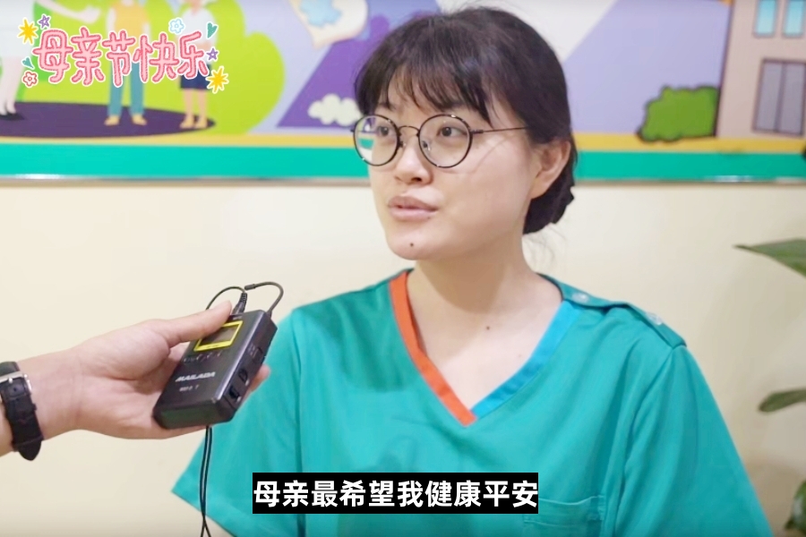 “作为一名医护人员,平时因为忙于工作,缺少对妈妈的陪伴,总觉得对她亏欠太多,今天是母亲节,这一天我们所有人都在感恩和祝福,这是属于每一个做母亲的节日。”