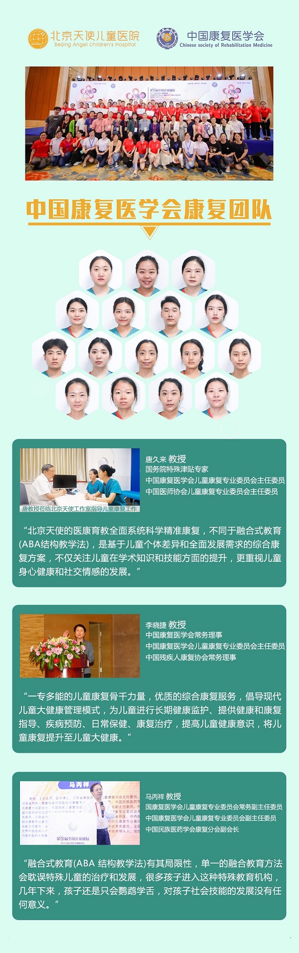 中国康复医学会是康复领域的全国性学术组织,我院康复科通过中国康复医学会治疗康复技术专项培训基地的建设与管理,固强补弱、提质增能,加强专业人才培养、提高治疗康复技术专项建设,为全国的患儿提供更加优质、高水平的康复服务,为中国康复医学事业的发展做出自己的贡献。