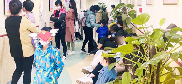 医院的走廊、导医台、大厅还有二楼的门诊处人头攒动,很多外地家长专程从老家带着孩子的历史检查报告赶过来,一大早便候在诊室外。